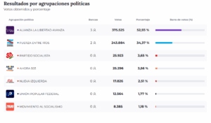 Los departamentos donde no logró imponerse fueron: en la categoría senadores – Feliciano, Federal e Islas – y en diputados – Feliciano e Islas.
