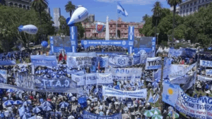 La Confederación General del Trabajo (CGT) encabezó este jueves una masiva marcha en la Plaza de Mayo para repudiar el proyecto de reforma laboral impulsado por el Gobierno nacional, y anticipó la posibilidad de un “paro nacional” si no se atienden sus reclamos.