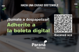 La Municipalidad de Paraná, a través de la Administración Fiscal Municipal (AFIM), invita a los contribuyentes a adherirse al sistema de Boleta Digital, una herramienta que permite recibir las tasas por servicios municipales de forma más ágil, segura y sin el uso de papel, en línea con el proceso de modernización y despapelización que impulsa el Municipio.